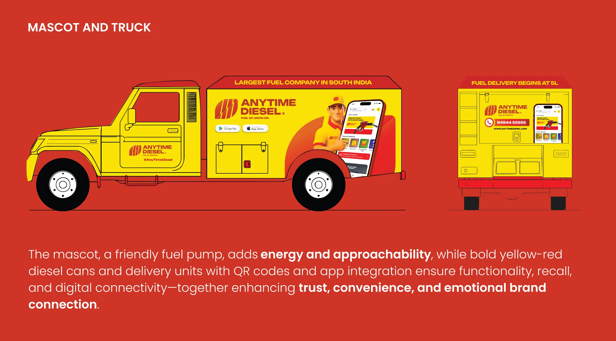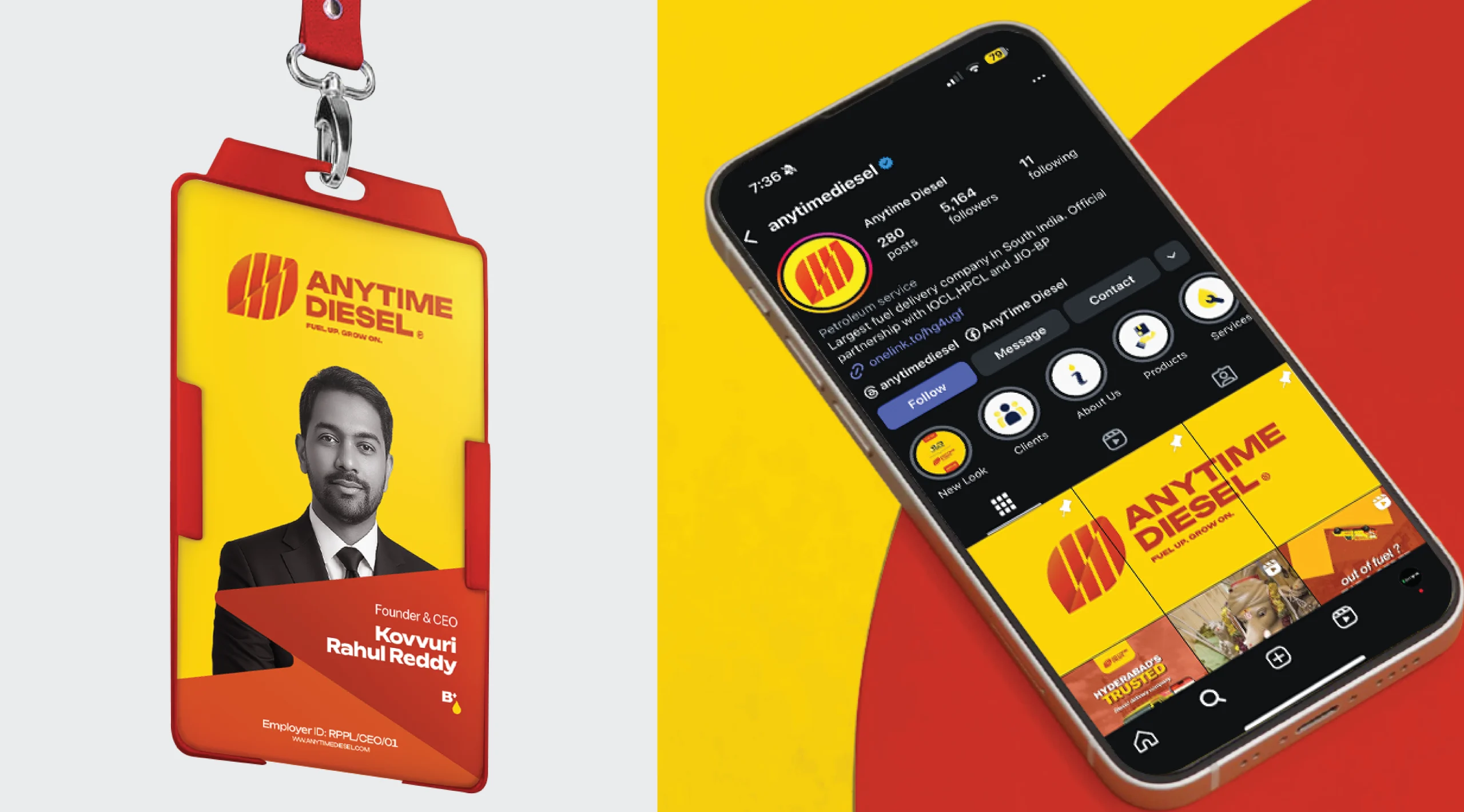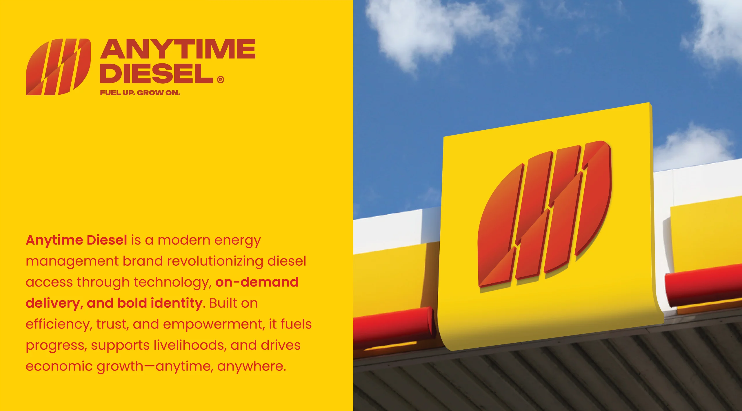 We designed a vibrant, consistent visual system blending red and yellow for energy and reliability. A dynamic logo fuses power and growth, supported by