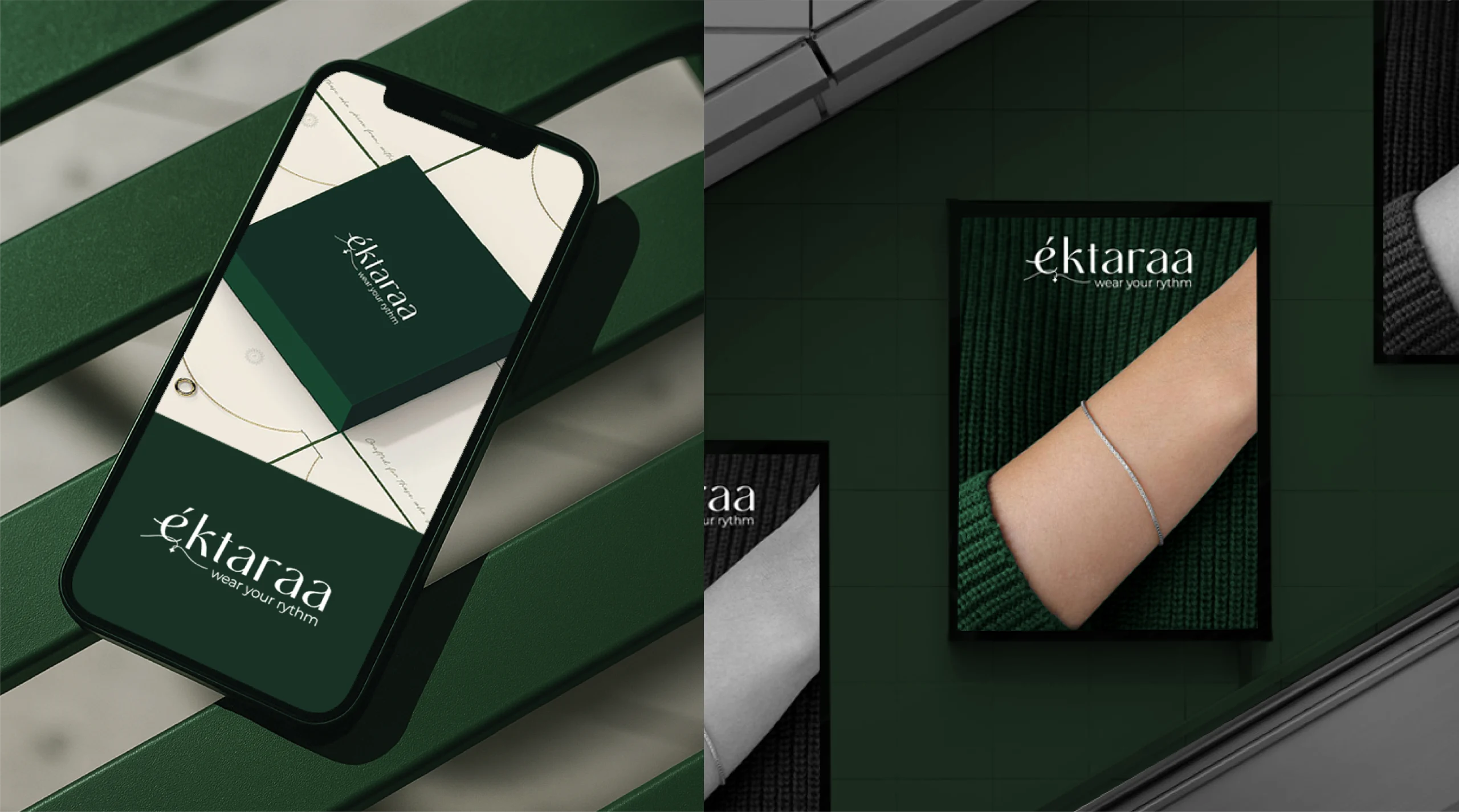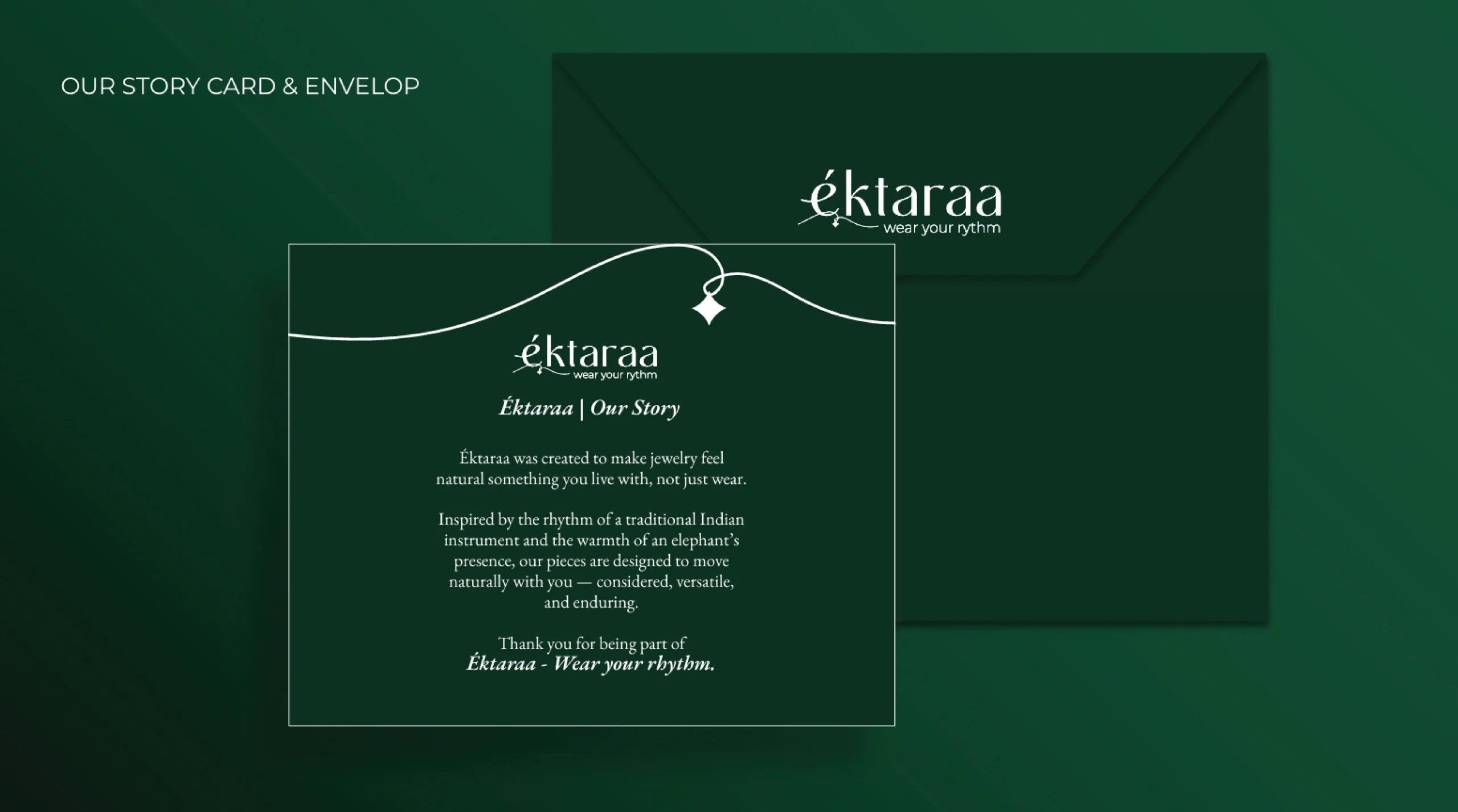 The primary challenge was to craft a brand identity that felt culturally rooted yet globally relevant. éktaraa needed to stand apart in a saturated jewellery market full of predictable gold tones, heavy ethnic motifs, and mass-market appeal. It wanted to be seen as premium, poetic, and personal — without
