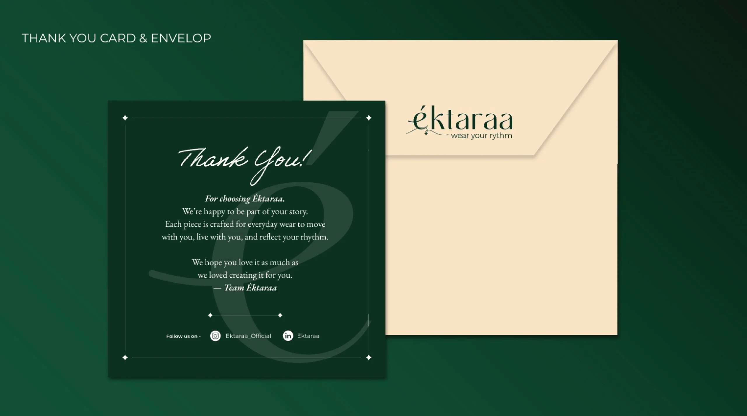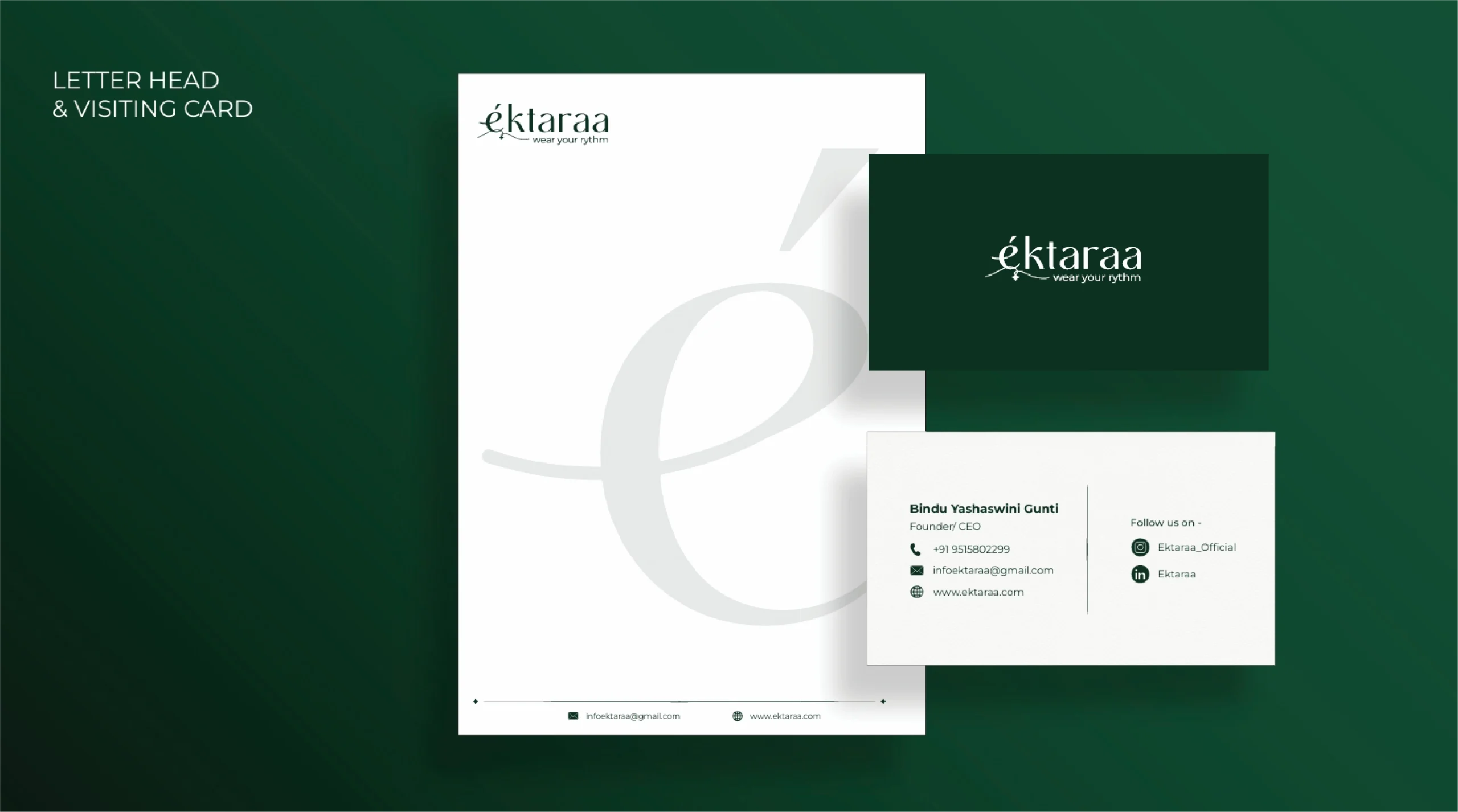 We built Éktaraa’s branding as a story-first experience — a mood, rhythm, and feeling one wears. Every element, from typography to color, reflects melody, movement, and cultural depth with calm confidence.