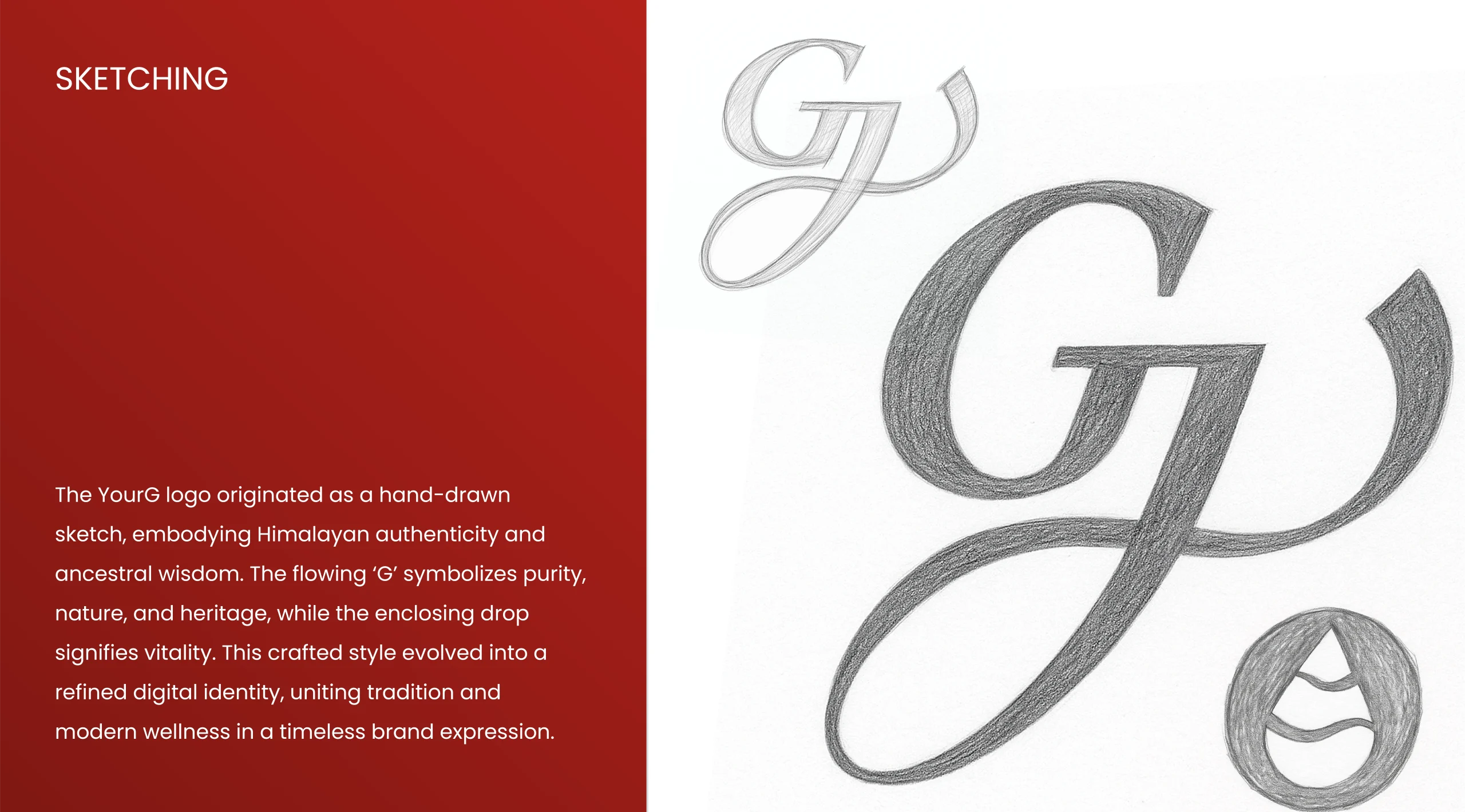 We distilled the essence of YourG into a refined wordmark and an iconic calligraphic ‘G’, complemented by a drop motif that symbolizes Himalayan purity. This fusion of elegance, heritage, and simplicity creates a logo that is timeless, memorable, and versatile—designed to adapt seamlessly across packaging, digital, and retail touchpoints.